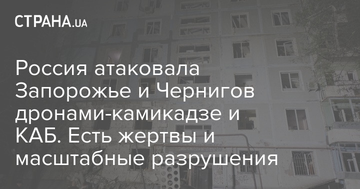 Россия атаковала Запорожье и Чернигов дронами-камикадзе и КАБ. Есть жертвы и масштабные разрушения