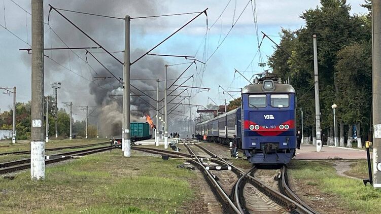 Судя по публикуемым сумскими пабликами фото, состав, по которому был нанесен удар в Шостке, был товарно-пассажирским.