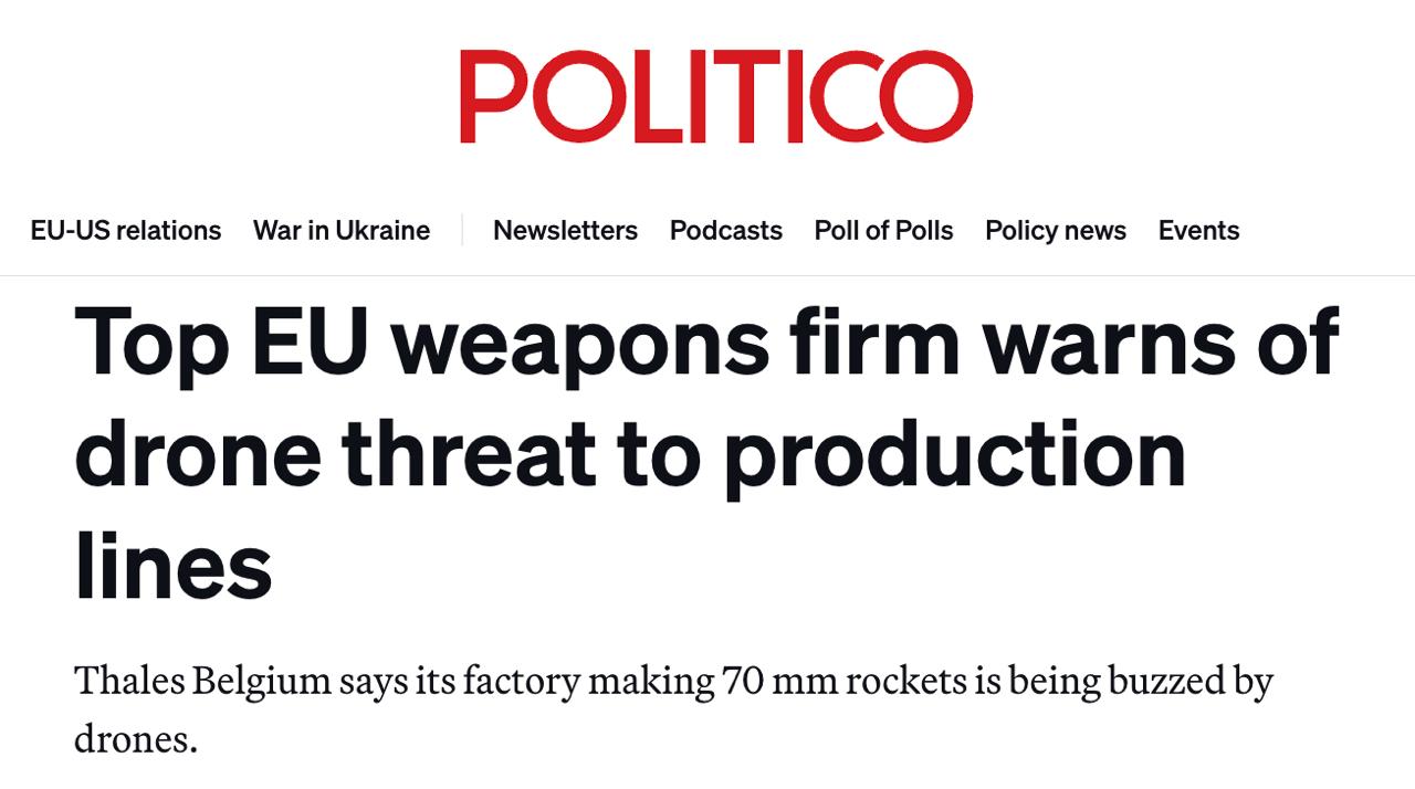 Один из крупнейших европейских производителей ракет противовоздушной обороны Thales заявил, что над его "сверхсекретными" заводами в Бельгии все чаще летают беспилотнки. По словам директора Thales в Бельгии Алена Кеврина, закон запрещает компании сбивать или глушить эти дроны.