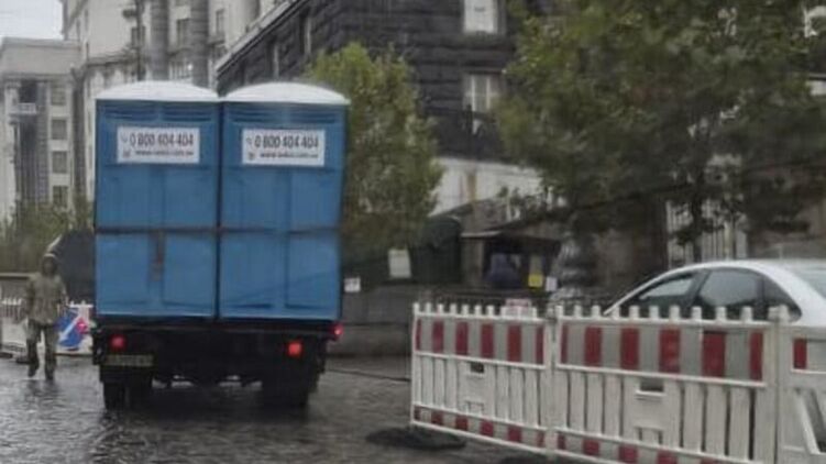 После ночного обстрела Киева в правительственный квартал завезли воду и биотуалеты. Фото