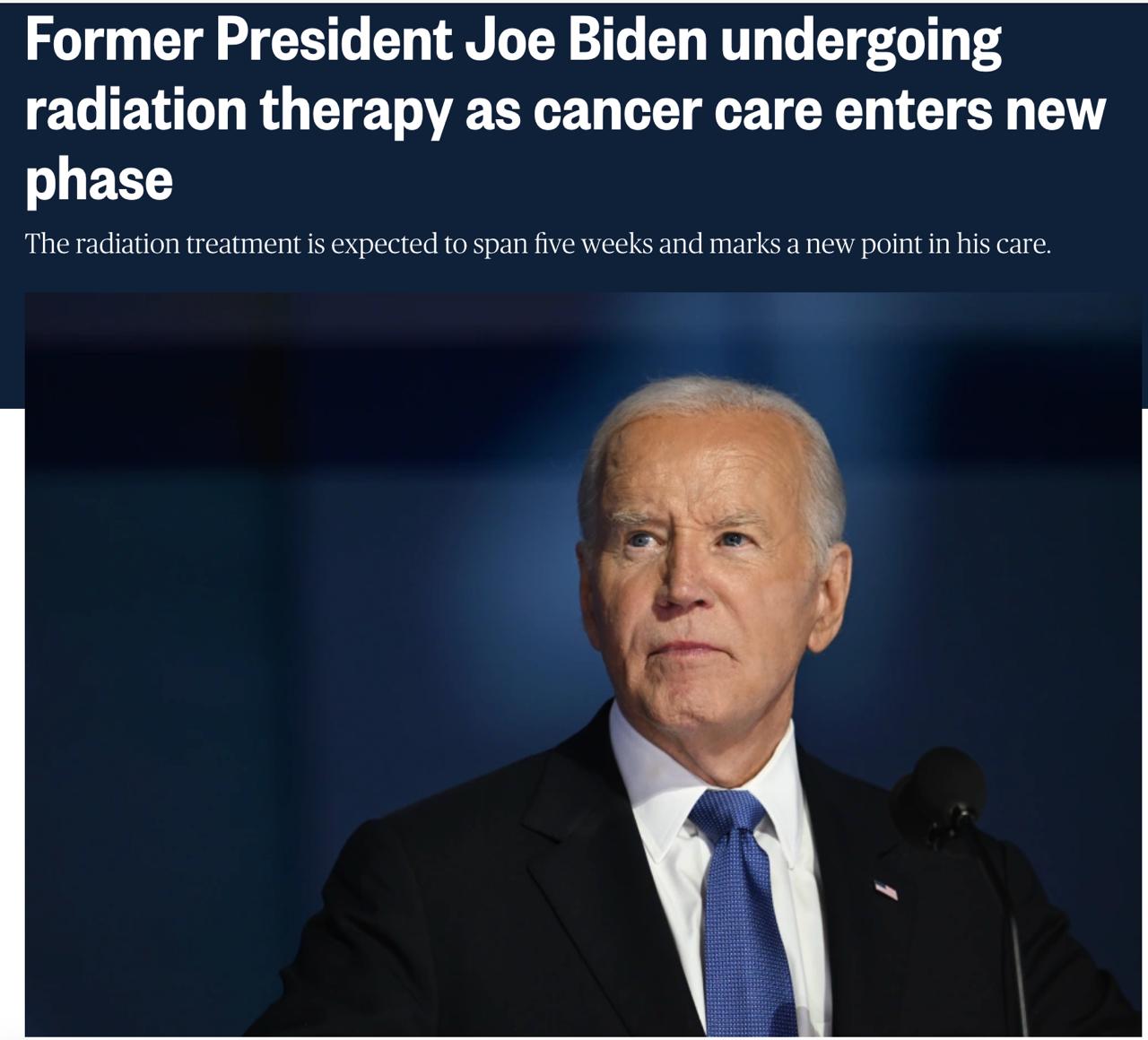 Также, как пишет NBC News со ссылкой на источники, Байден проходит пятинедельный курс лучевой терапии после того, как у него в мае 2025 года выявили агрессивную форму рака простаты с метастазами в кости.
