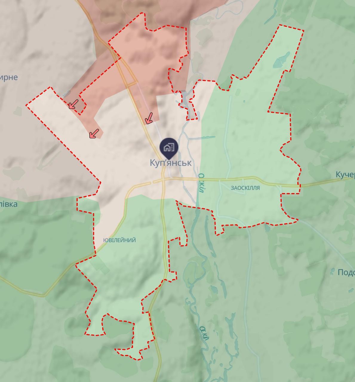 На карте Deep State примерно половина Купянска указана под контролем РФ или в серой зоне.