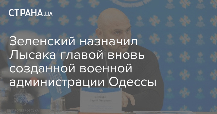 Владимир Зеленский назначил председателя Днепропетровской областной военной администрации Сергея Лысака главой только что созданной военной администрации Одессы.
