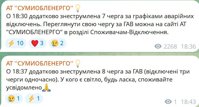 О введении дополнительных отключений сообщает и Сумыоблэнерго.
