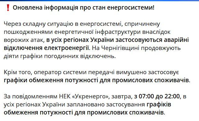 Николаевские и львовские паблики пишут о введении графиков отключений, а сумские – об увеличении групп отключений по указанию Укрэнерго.