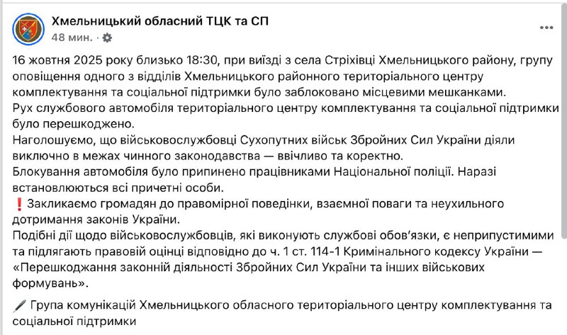 После резонанса в соцсетях Хмельницкий областной ТЦК и СП прокомментировал конфликт. В ТЦК заявили, что микроавтобус военкомов заблокировали гражданские лица, а военные действовали исключительно в рамках законодательства — "вежливо и корректно". Блокирование автомобиля было прекращено сотрудниками Национальной полиции.
