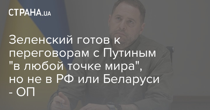 Зеленский готов к переговорам с Путиным "в любой точке мира", но не в РФ или Беларуси - ОП