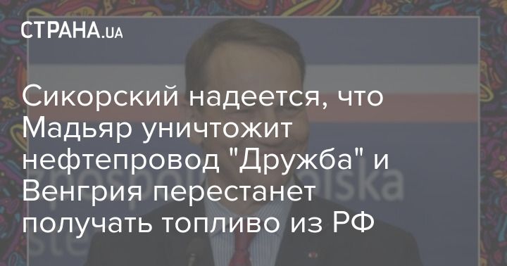 Министр иностранных дел Польши Радослав Сикорский высказал надежду, что командующий Сил беспилотных систем ВСУ Роберт Бровди (Мадьяр) выведет из строя нефтепровод "Дружба", через который Венгрия получает российскую нефть.