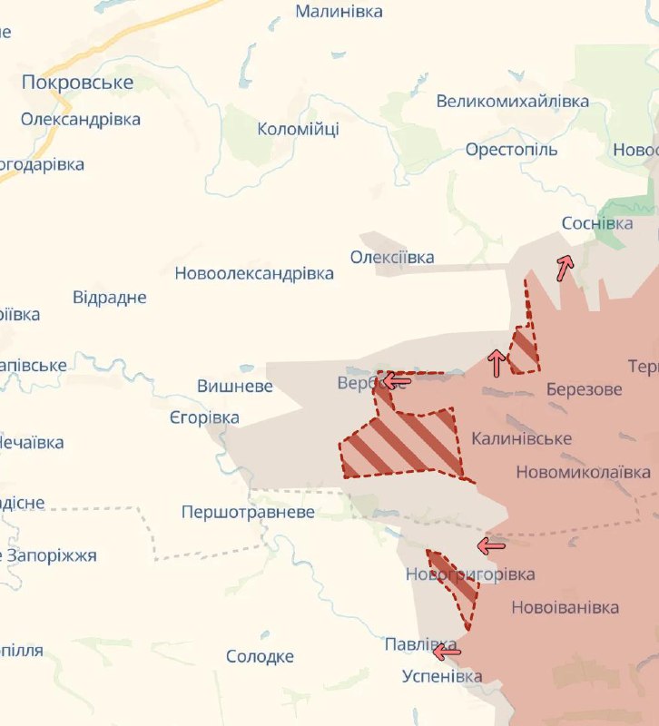 11.39 Армия РФ продвинулась в Днепропетровской области около Вербового и Степового, а также южнее, около Новогригоровки Запорожской области. Об этом сообщает Deep State.