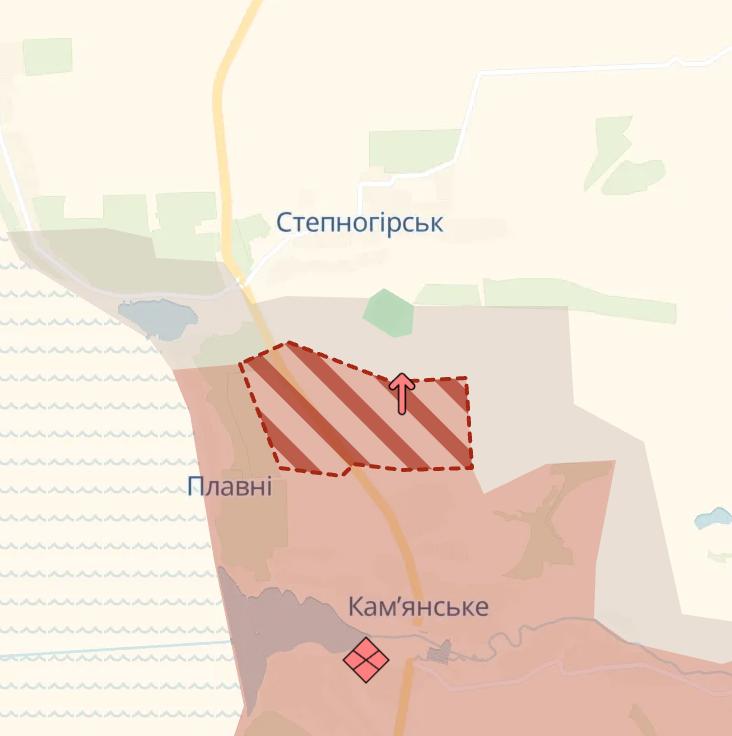 09:50 Армия РФ снова продвинулась на запорожском направлении возле Каменского, сообщает Deep State.