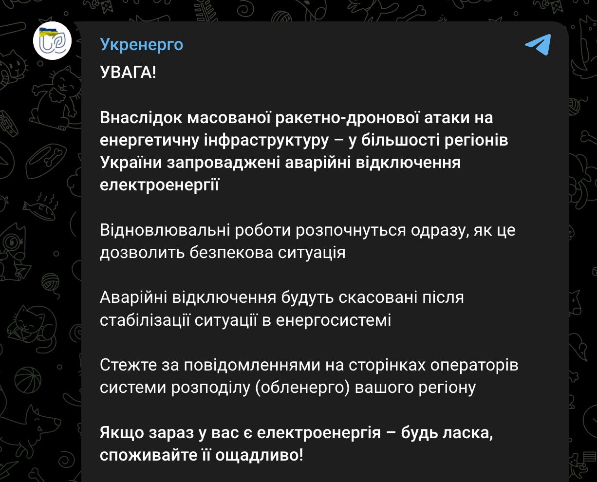 8.37 Уже во всех регионах Украины введены отключения света, сообщает "Укрэнерго".