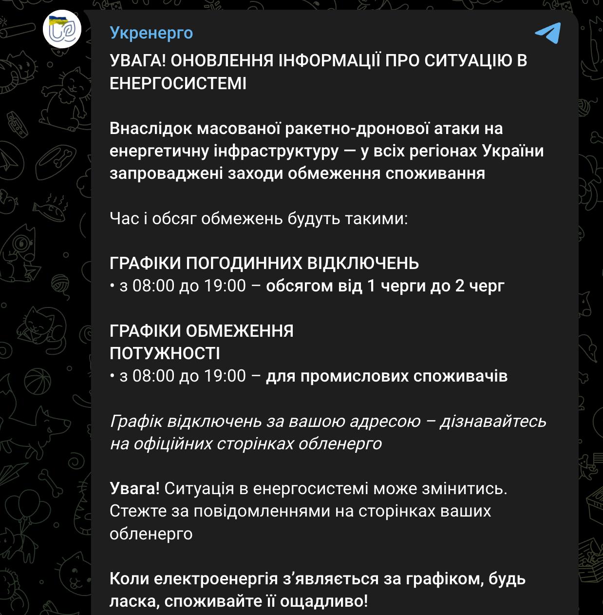 10.19 По всей Украине отменены графики отключения света, сообщает Минэнерго.