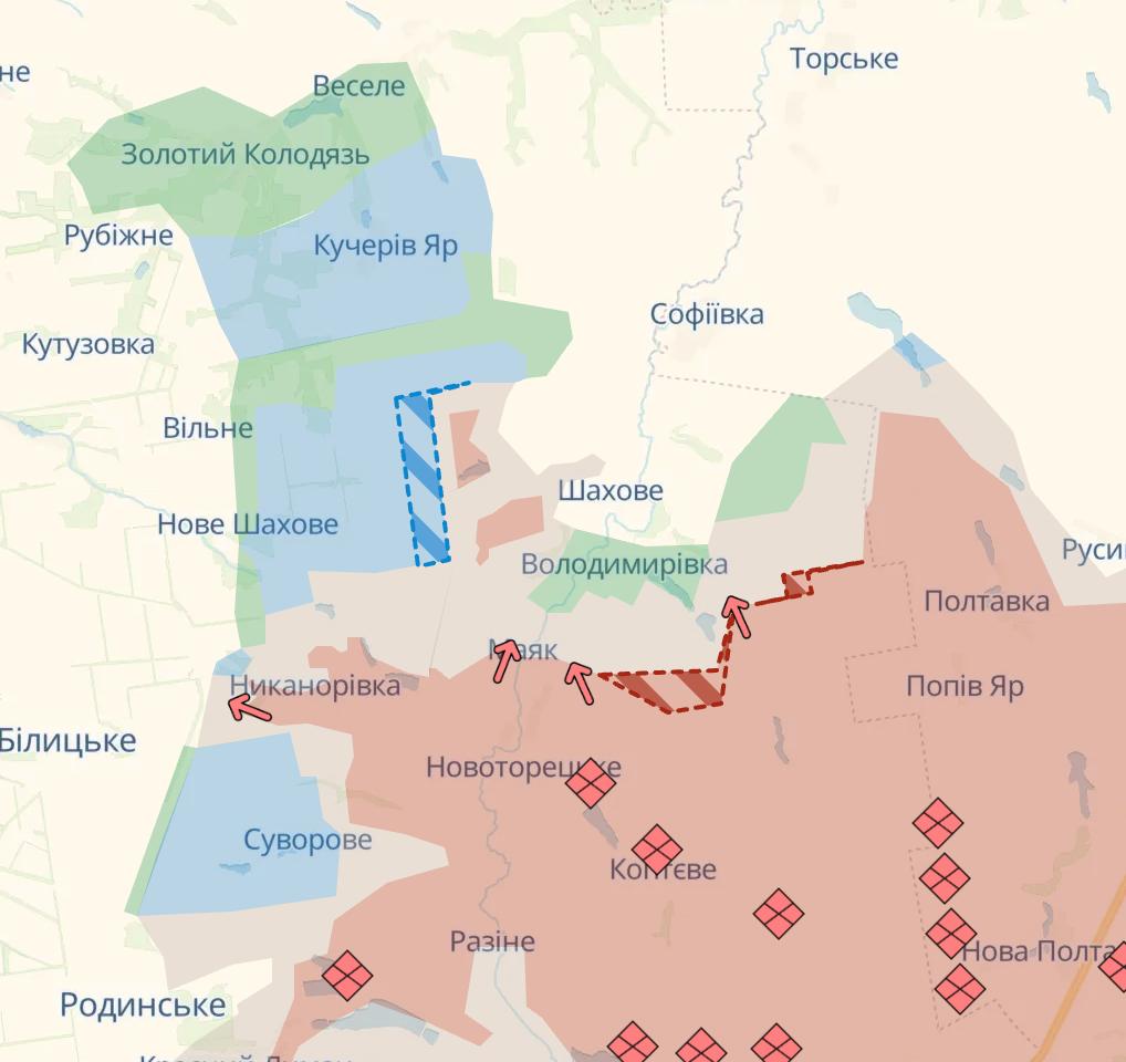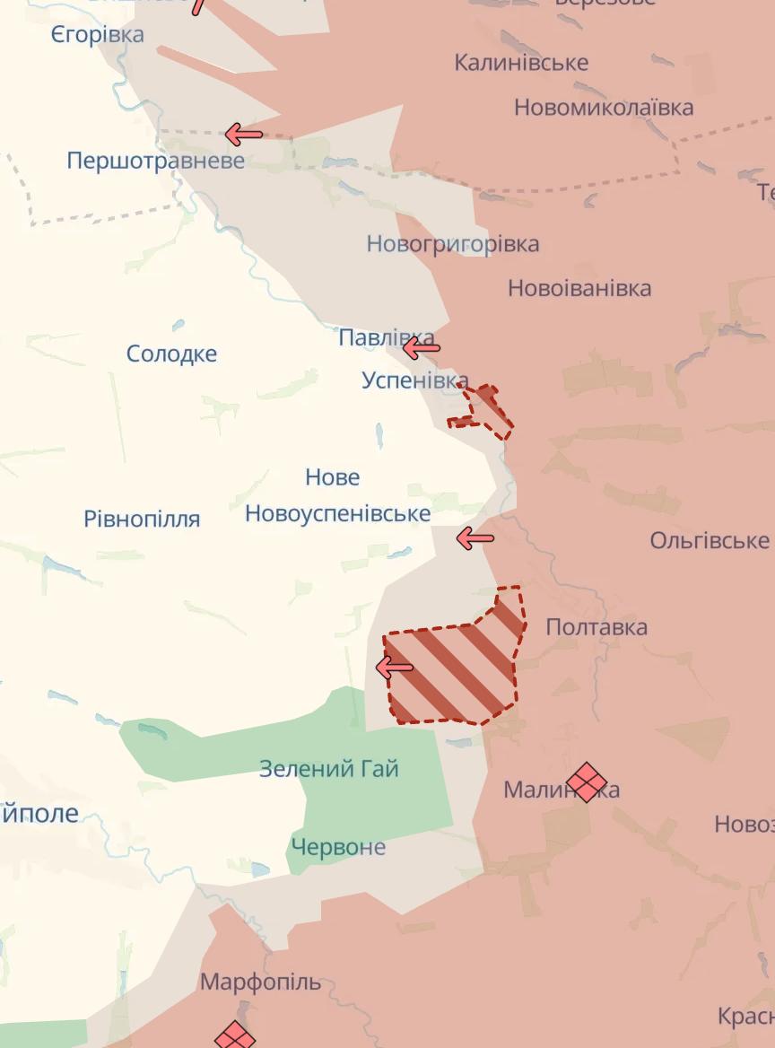 9.35 Армия РФ продвинулась южнее Покровска и на востоке Запорожской области, сообщает Deep State.