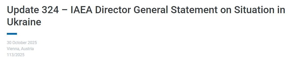 Обстрелы ночью и утром 30 октября привели к повреждению подстанций, питающих украинские АЭС и критически важных для ядерной безопасности Украины.