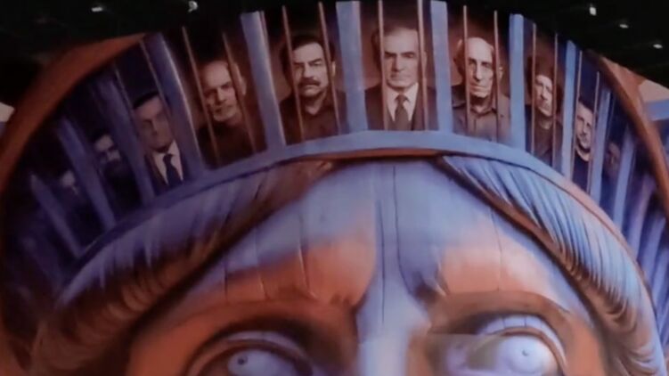 В центре Тегерана появился плакат, на котором изображена голова Статуи Свободы, а в её короне – портреты политиков, пострадавших от США. Перформанс создан по случаю 46-й годовщины захвата американского посольства накануне Исламской революции 1979 года.