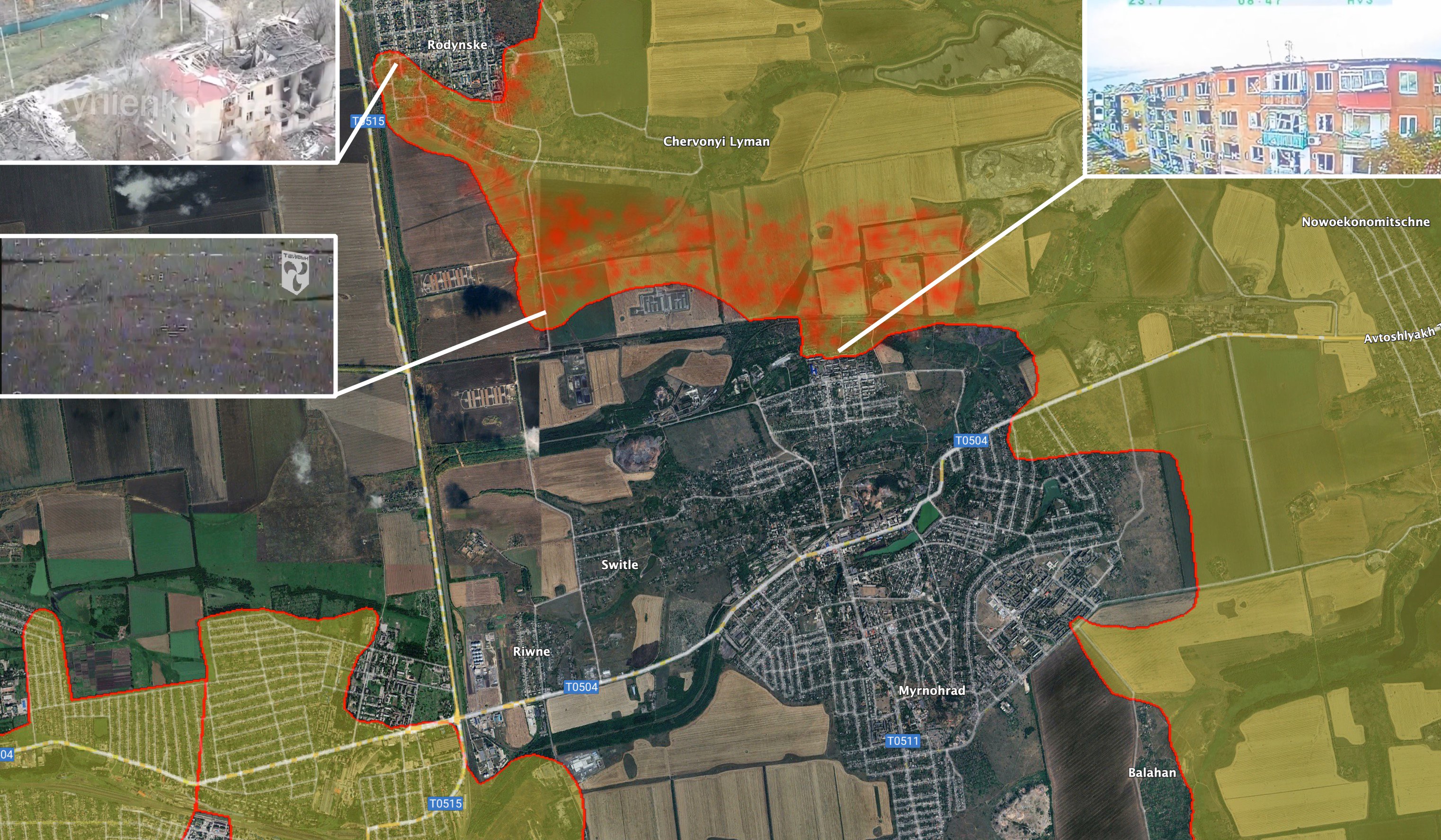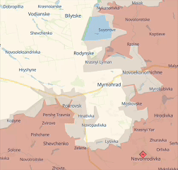 "Согласно последним геолокационным данным и данным источников на местах, ситуация между Родинским и Мирноградом ухудшается, российские силы вторжения входят в оба города в соответствующих районах и продвигаются вдоль лесистых хребтов между ними", - сообщает он.