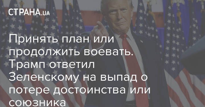 Президент США Дональд Трамп ответил Владимиру Зеленскому, который заявил, что Украине приходится выбирать "между достоинством и США". Он однозначно дал понять, что Киев должен принять присланный из Вашингтона мирный план.