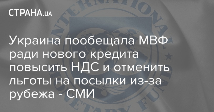 Украина пообещала МВФ ради нового кредита повысить НДС и отменить льготы на посылки из-за рубежа - СМИ