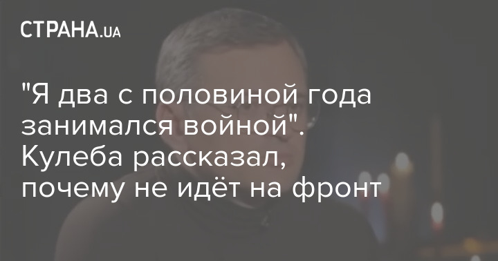 Своё нежелание воевать добровольцем Кулеба объяснил тем, что будучи на должности министра "2,5 года занимался войной".