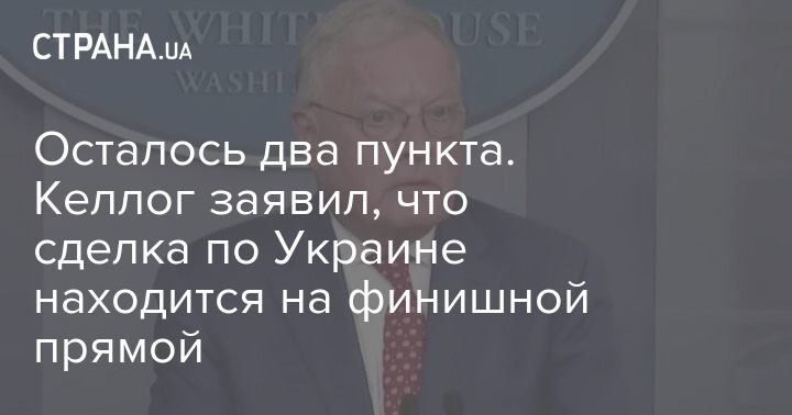 Осталось два пункта. Келлог заявил, что сделка по Украине находится на финишной прямой