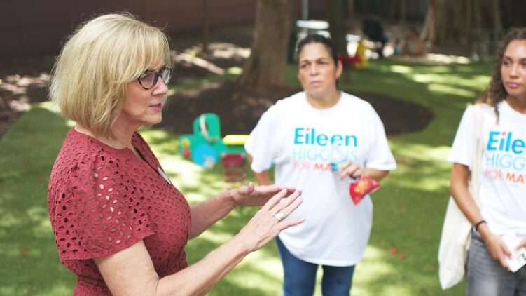 Во время предвыборной кампании Хиггинс обещала улучшить качество жизни горожан, обеспечив доступность жилья и развивая инфраструктуру. Она также выступала с критикой иммиграционной политики Трампа.
