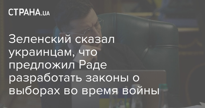Президент Украины Владимир Зеленский заявил, что предложил Верховной Раде разработать законы о выборах во время войны.