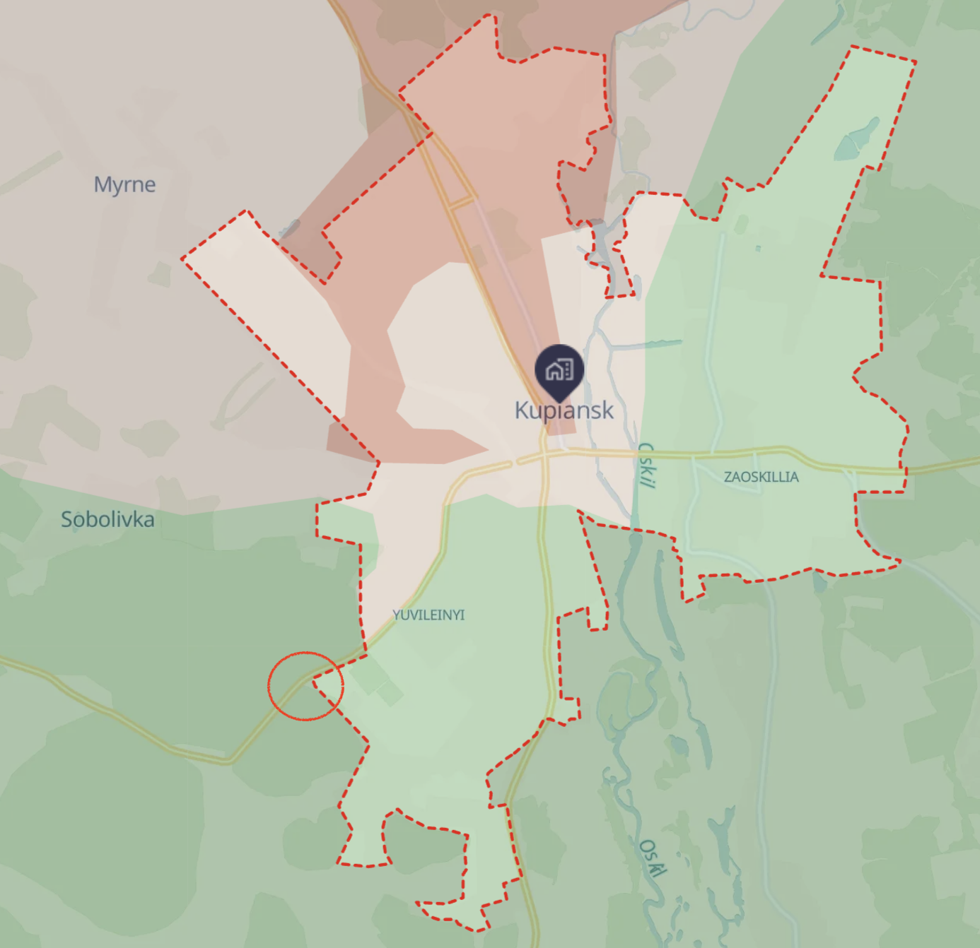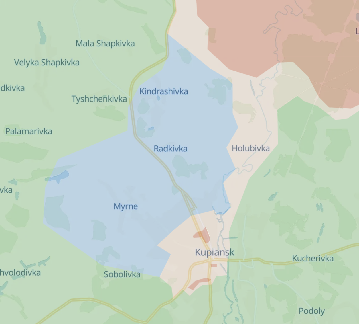 Освободив Радьковку и Кондрашовку, а также взяв под огневой контроль Голубовку, ВСУ сумели отрезать группировку РФ в Купянске от основных сил, заявляет Deep State. После этого произошла зачистка Мирного и северо-западных окрестностей Купянска.