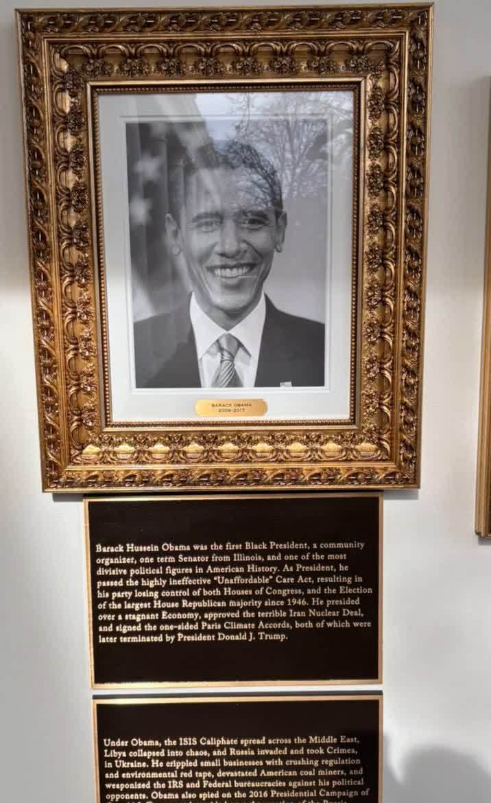 Так, одна табличка называет Джо Байдена "худшим президентом в истории США", а другая Барака Обаму – "одной из самых спорных политических фигур".