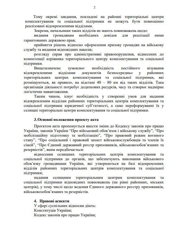 Судя по пояснительной записке, законопроект предусматривает превращение ныне действующих обособленных отделений районных ТЦК (они создаются на уровне объединенных территориальных громад и работают, в основном, в сельской местности) в полноценные ТЦК.