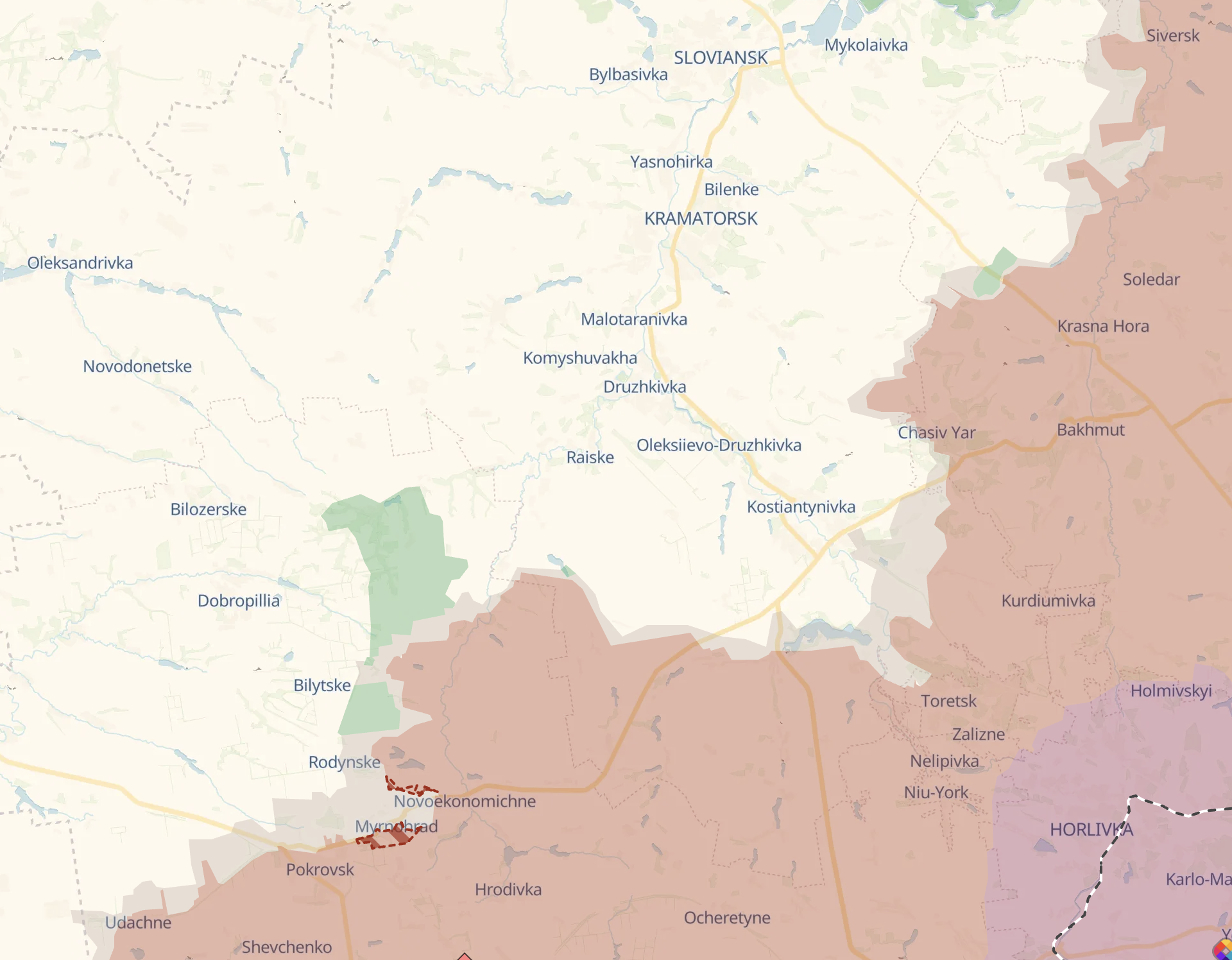 Он сообщил, что за последние недели россиянам удалось удержать и расширить плацдарм западнее реки Казенный Торец, усилить давление на север Мирнограда и продвинуться малыми пехотными группами в пригородах. Отдельные подразделения вошли в северные поселки вокруг Мирнограда, частично блокировав украинские силы в его центральной части.