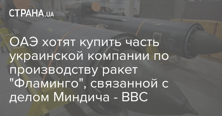 ОАЭ хотят купить часть украинской компании по производству ракет "Фламинго", связанной с делом Миндича - BBC