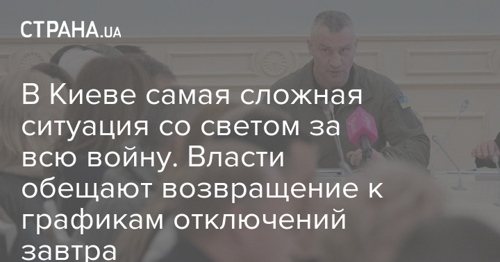 В Киеве самая сложная ситуация со светом за всю войну. Власти обещают возвращение к графикам отключений завтра