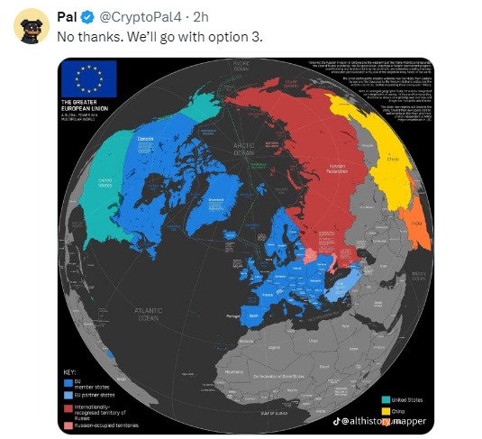 Этот выбор выглядит странным, учитывая, что ни Китай, ни Россия ни разу не предъявляли претензий на остров. При этом выбора в пользу Дании автор изображения не предлагает.