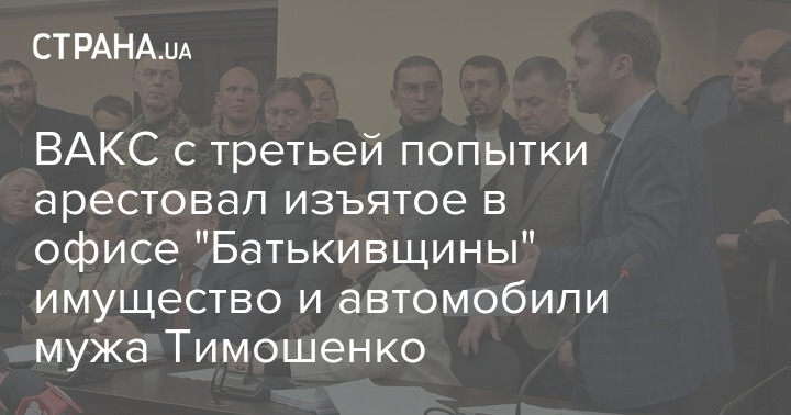 ВАКС с третьей попытки арестовал изъятое в офисе "Батькивщины" имущество и автомобили мужа Тимошенко