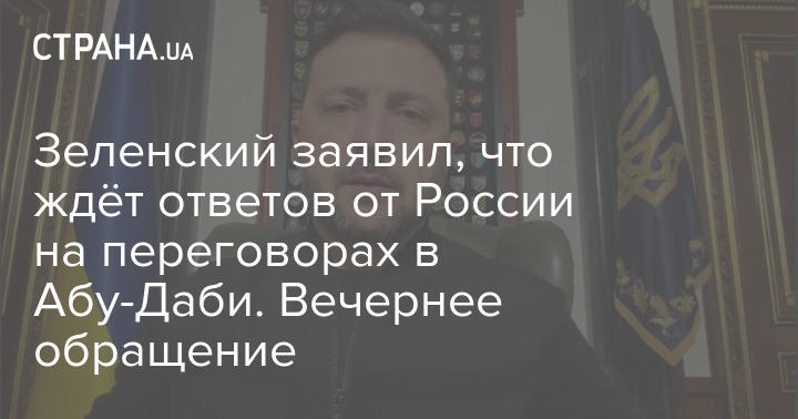 Президент Украины Владимир Зеленский заявил, что ждёт ответов от РФ на переговорах в Абу-Даби.
