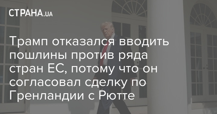 Президент США Дональд Трамп отказался от введения пошлин против ряда европейских стран, потому что он и генеральный секретарь НАТО Марк Рютте согласовали рамки сделки по Гренландии.