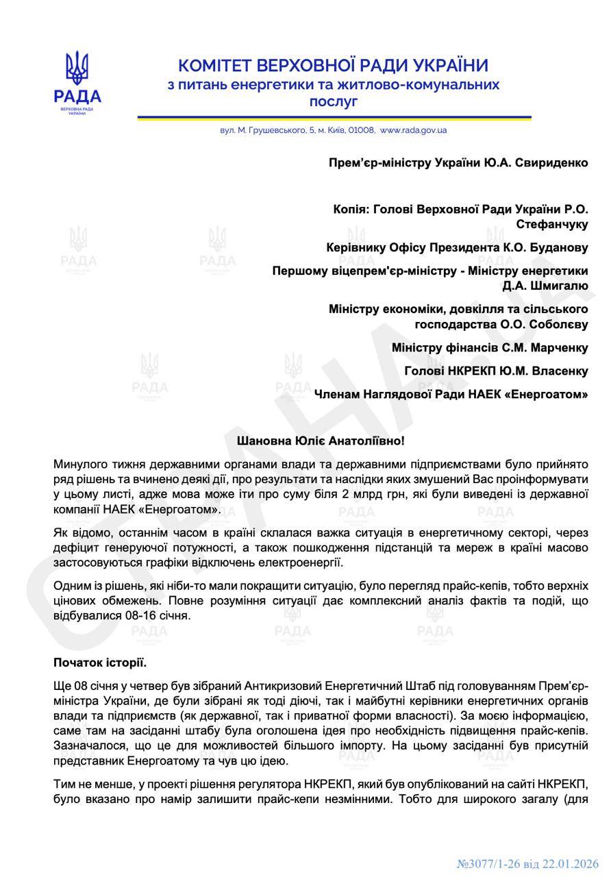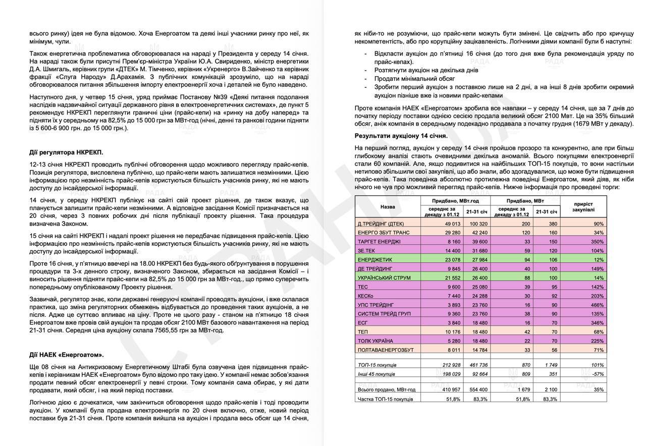 Также публикуется письмо руководителям страны от главы парламентского комитета по ТЭК Андрея Геруса о ситуации с резким повышением цен на электроэнергию для промышленности.