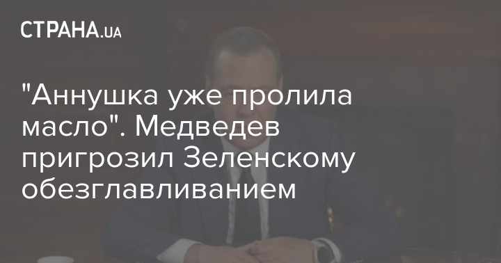 "Судьбу этого персонажа (Зеленского - Ред.) я обсуждать не хочу, поскольку он уже настолько всем нам набил оскомину. Вот я даже сужу по тому, что коллеги там пишут. Но могу сказать только одно. Знаете, как сказал один известный киевлянин: "Аннушка уже пролила масло". И значит, головы ему не сносить", - сказал Медведев.
