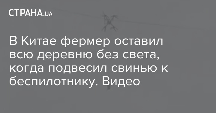 В Китае фермер оставил всю деревню без света, когда подвесил свинью к беспилотнику. Видео