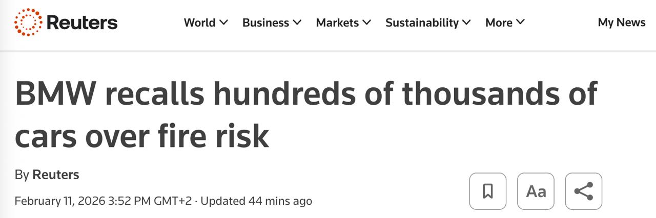 "В худшем случае это может привести к возгоранию автомобиля во время эксплуатации. В этом случае во время движения или при выходе из автомобиля может быть заметен дым или запах", - отметили представители BMW.