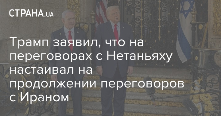 Президент США Дональд Трамп заявил, что на переговорах с премьер-министром Израиля Беньямином Нетаньяху настаивал на продолжении переговоров с Ираном.