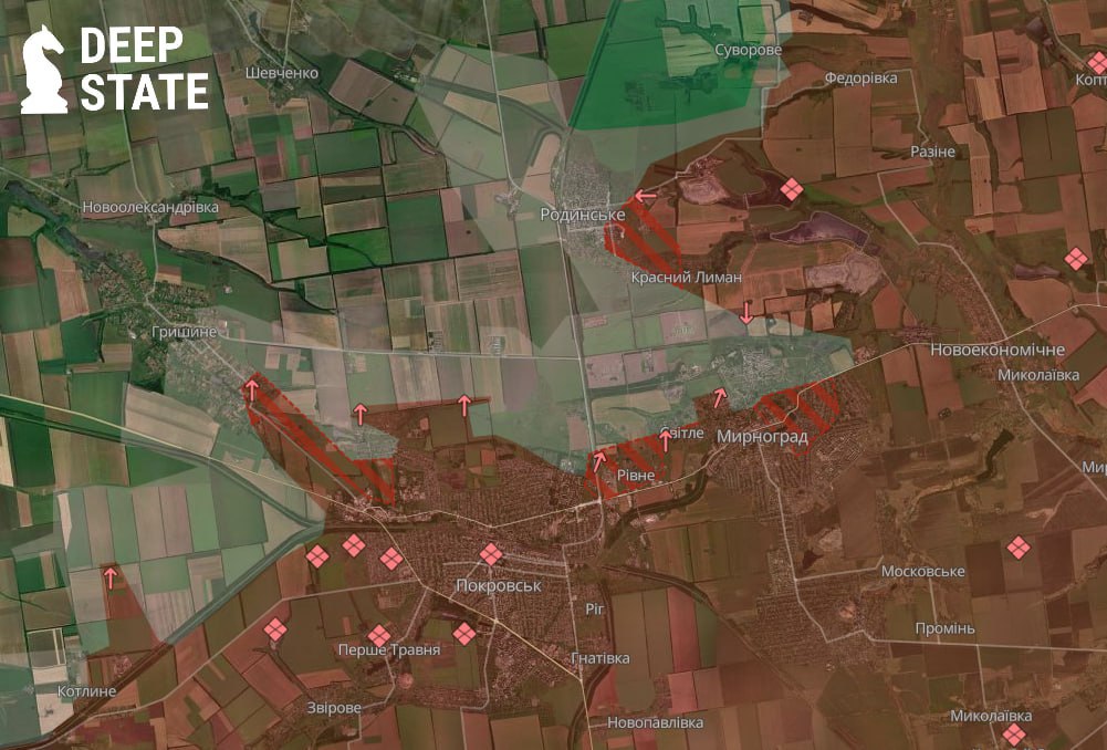 12.23 Армия РФ продвинулась в Покровске, Мирнограде и окрестностях, сообщает Deep State.