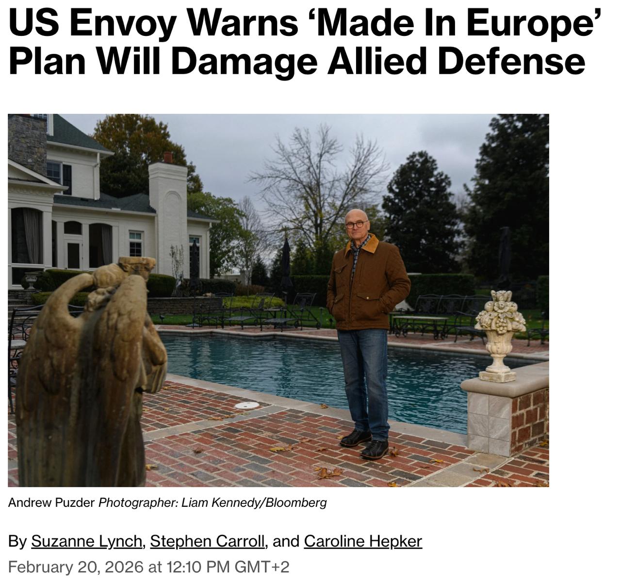 Постоянный представитель США при ЕС Эндрю Паздер предостерег Европу от "серьезной ошибки", если та начнет закупать больше своего оружия, а не американского.