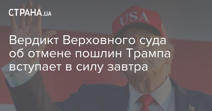 Вердикт Верховного суда об отмене пошлин Трампа вступает в силу завтра
