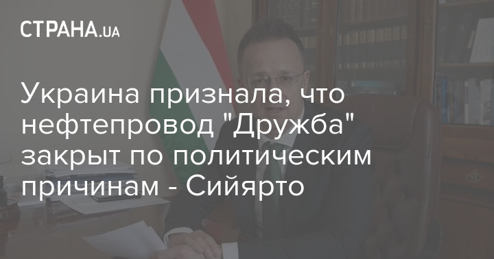 Украина признала, что нефтепровод "Дружба" закрыт по политическим причинам - Сийярто