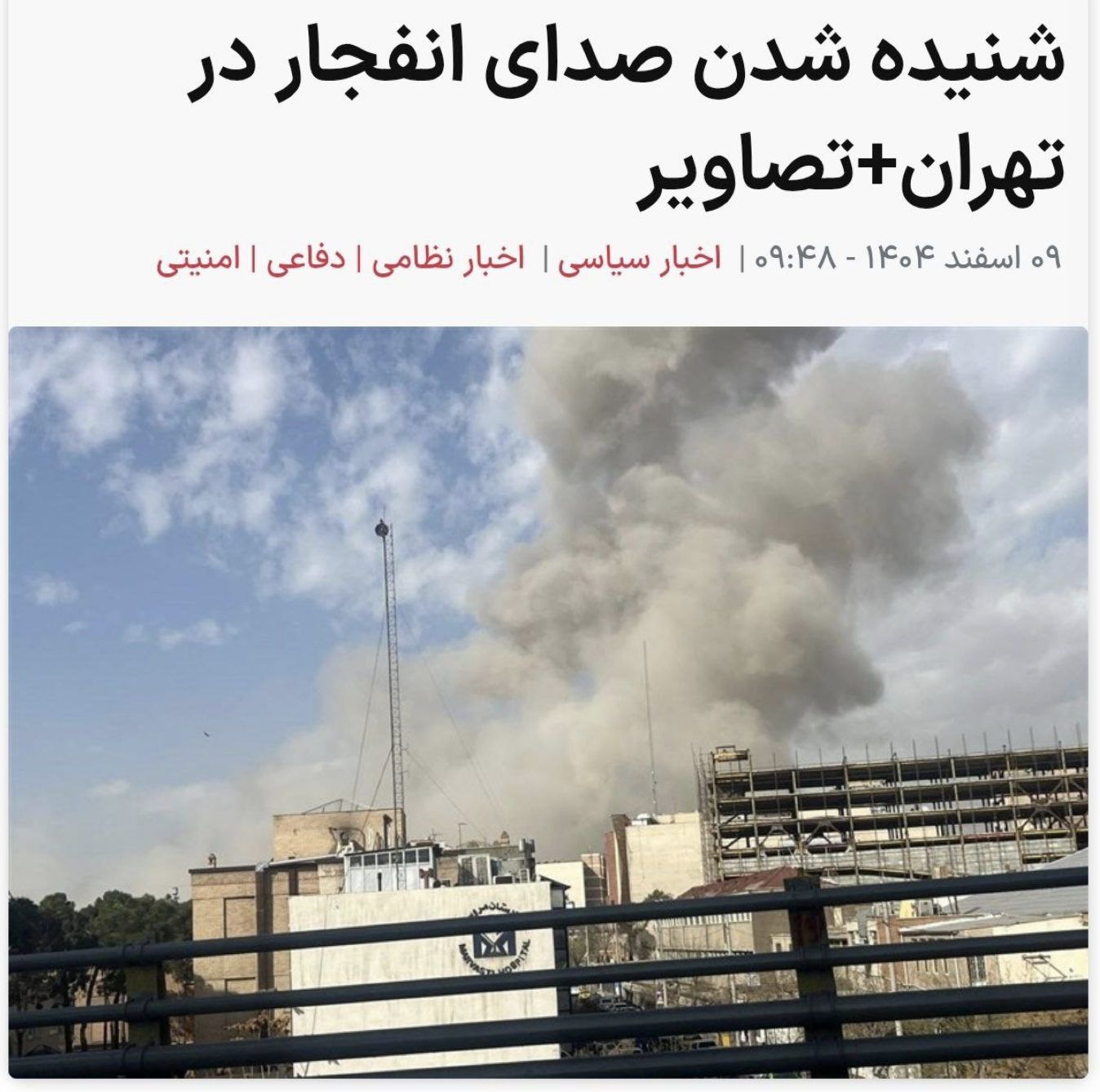 12:03 В Тегеране новый взрыв, сообщают иранские СМИ.