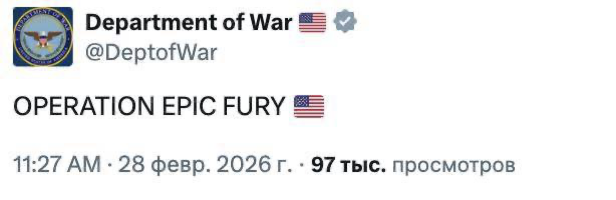 10:44 Пентагон назвал операцию против Ирана «Эпическая ярость».