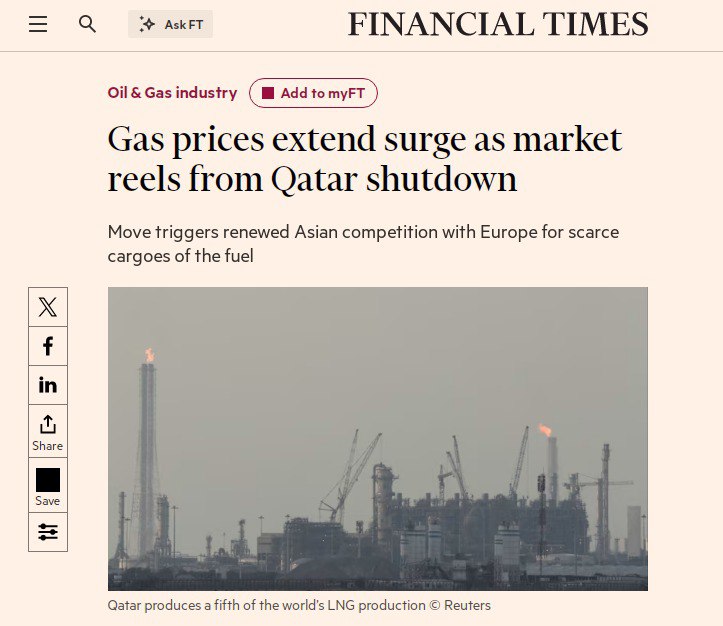 В Европе базовый индекс Stoxx Europe 600 упал на 2,9% - это самое резкое дневное падение с введения президентом США Дональдом Трампом мировых пошлин в апреле прошлого года. Причем оно произошло на фоне роста цен на газ в Европе ещё на 20%.