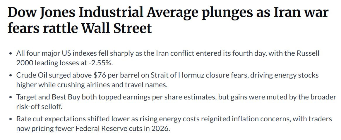 Ранее газета писала, что война на Ближнем Востоке привела к резкому падению европейских фондовых рынков из-за роста цен на энергоносители. В частности, в Европе базовый индекс Stoxx Europe 600 упал на 2,9% - это самое резкое дневное падение с момента введения президентом США Дональдом Трампом мировых пошлин в апреле прошлого года
