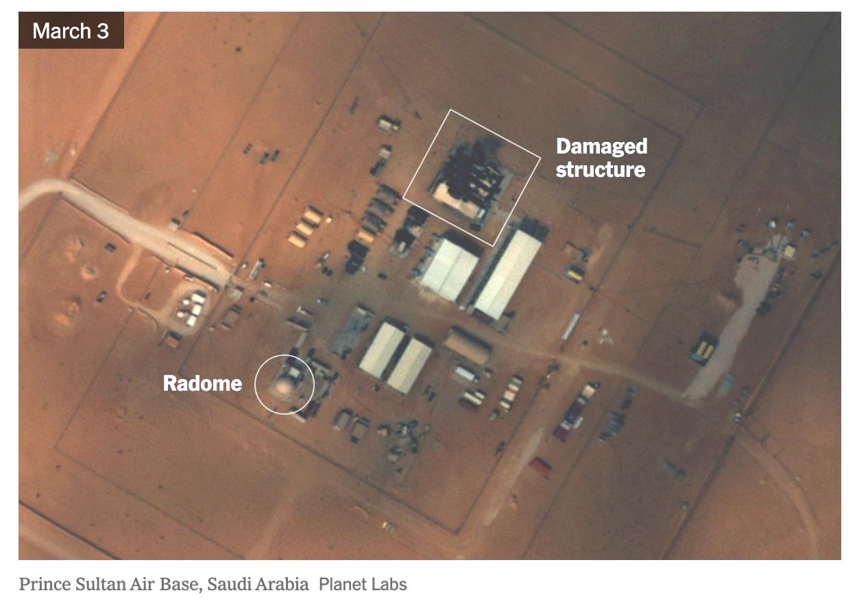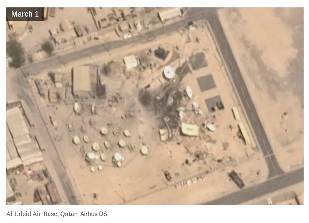Кроме того, были поражены другие американские военные объекты в Дубае, Ираке, Кувейте и Иордании, но они находятся не рядом с системами связи или радиолокационными системами.